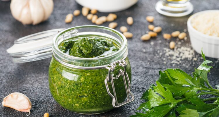 Unser Tipp – Sie können leicht ebenso großes Pesto aus Rucola zaubern. Halten Sie die Verhältnisse gleich.