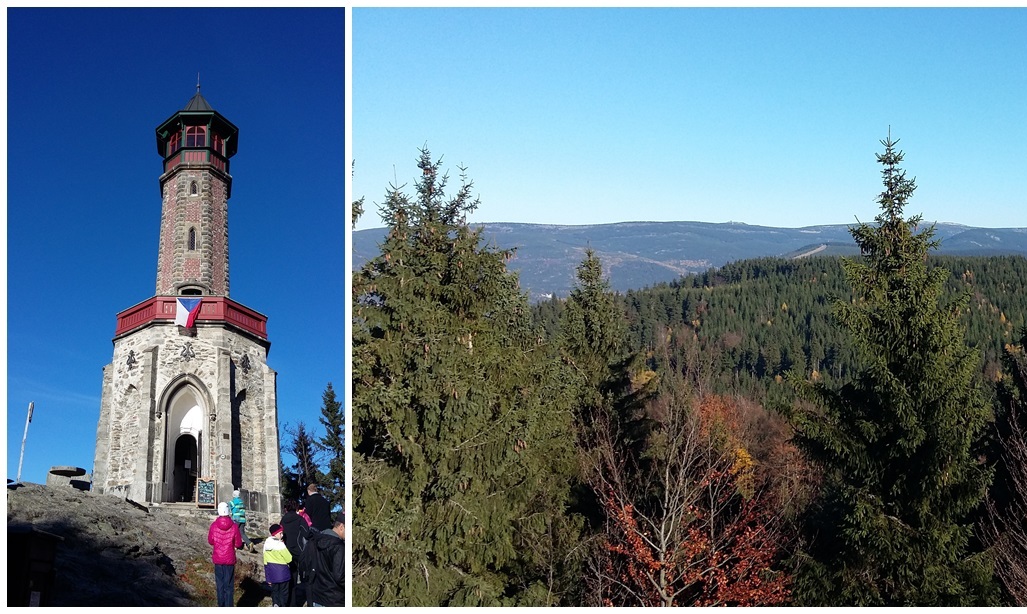 The best way to get to the lookout is from the villages of Kořenov (which owns it) and Příchovice. There you can drive and park. More savvy walkers can go from Tanvald or Harrachov. From November to December 23, it is open on Fridays, Saturdays, Sundays from 10 a.m. to 4 p.m. The lookout is closed on Christmas Eve. It is open again from 10 a.m. to 4 p.m. from December 25 to March 31. Outside these opening hours it is possible for min. 10 people arrange an individual tour by phone. Under the lookout there is a stand with refreshments and souvenirs and a nice playground. There are restaurants nearby where you can buy even a hot dog on the express train or have a whole lunch at reasonable prices. So a hike to the lookout is the perfect family trip.