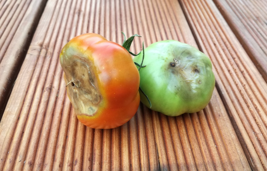 S.O.S!!! Ve chvíli, když už se těšíte na červená rajčátka, vám takovýto pohled na záhon může zkazit radost. Na spodní straně plodů se objevují veliké hnědé skvrny.