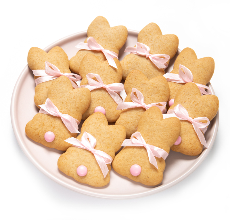 NÁŠ TIP: I když nejste zrovna zruční ve zdobení polevou, můžete udělat kouzelné velikonoční perníčky. Stačí použít vykrajovátko na zajíčky a udělat jim ocásek z kapky obarvené polevy, cukrové perličky nebo z lentilky přilepené trochou polevy. Uvázat zajíčkům různobarevné mašličky je už jen třešnička na dortu.