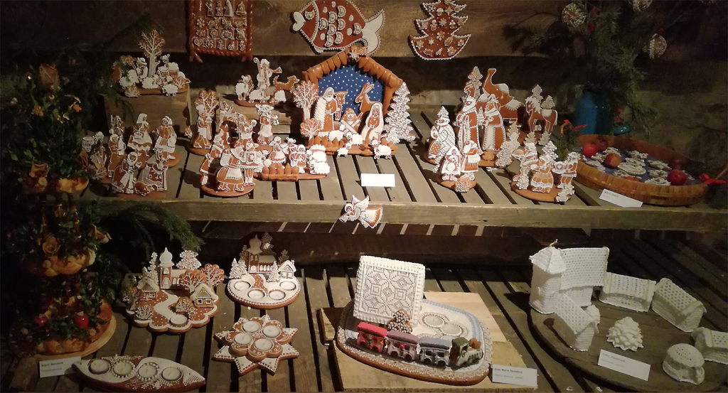 V kamenném sklepení na vás čekají staré loutky, hračky a hlavně betlémy nejrůznějších druhů a velikostí – včetně toho nejmenšího v ořechové skořápce, kde Ježíšek měří pouhé 4 milimetry. S oříšky souvisí i další rekord, největší louskáček, který si můžete sami vyzkoušet. Naživo můžete obdivovat práci řezbáře, výrobu skleněných figurek, za sympatické ceny si nakoupíte vánoční drobnosti v místních obchůdku. A než si vypijete kávičku nebo čaj, děti se zabaví při hře s dřevěnými kostkami, u kuličkodráhy nebo železnice.